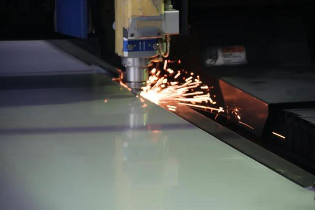 2、下料,用激光切割機對不銹鋼板材進行切割,切割出設(shè)計好的尺寸,不銹鋼配電箱的大部分部件都會在這一步加工出來。