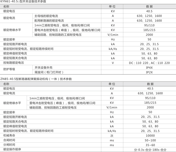 KYN61-40.5□ 型鎧裝移開式交流金屬封閉開關設備 (以下簡稱“開關設備”) 其主要特點是柜內配用 ZN85-40.5 型全絕緣真空斷路器及彈簧操動機構,也可配用ABB的VD4-40.5和HD4-40.5柜體采用敷鋁鋅板和冷軋鋼板噴塑組裝而成,提高了手車與柜體的配合精度,手車推進拉出十分輕便,互換性強。外形美觀、方案齊全、使用安全可靠。