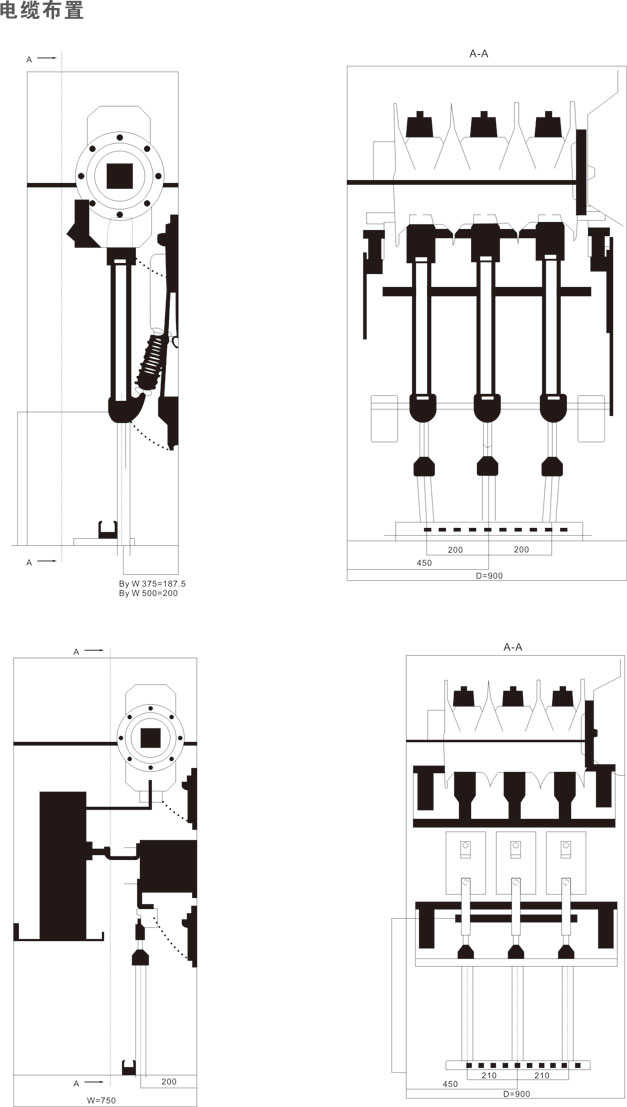小室包含操作機(jī)構(gòu)和機(jī)構(gòu)聯(lián)鎖以及位置指示、輔助接點(diǎn)、脫扣線圈、帶電顯示器和聯(lián)鎖。