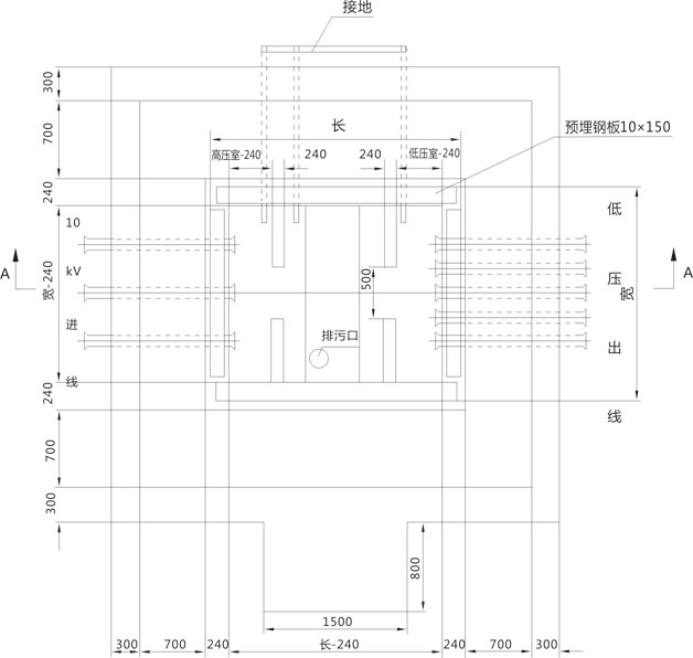 2. 基礎(chǔ)設(shè)在地勢較高處,四周向外排水,采用200#水泥沙漿砌筑,摻3%防水劑,底部向油槽略有傾斜(干變時取消油槽)